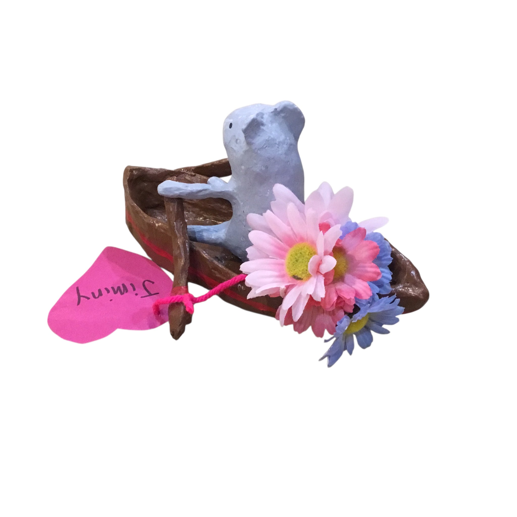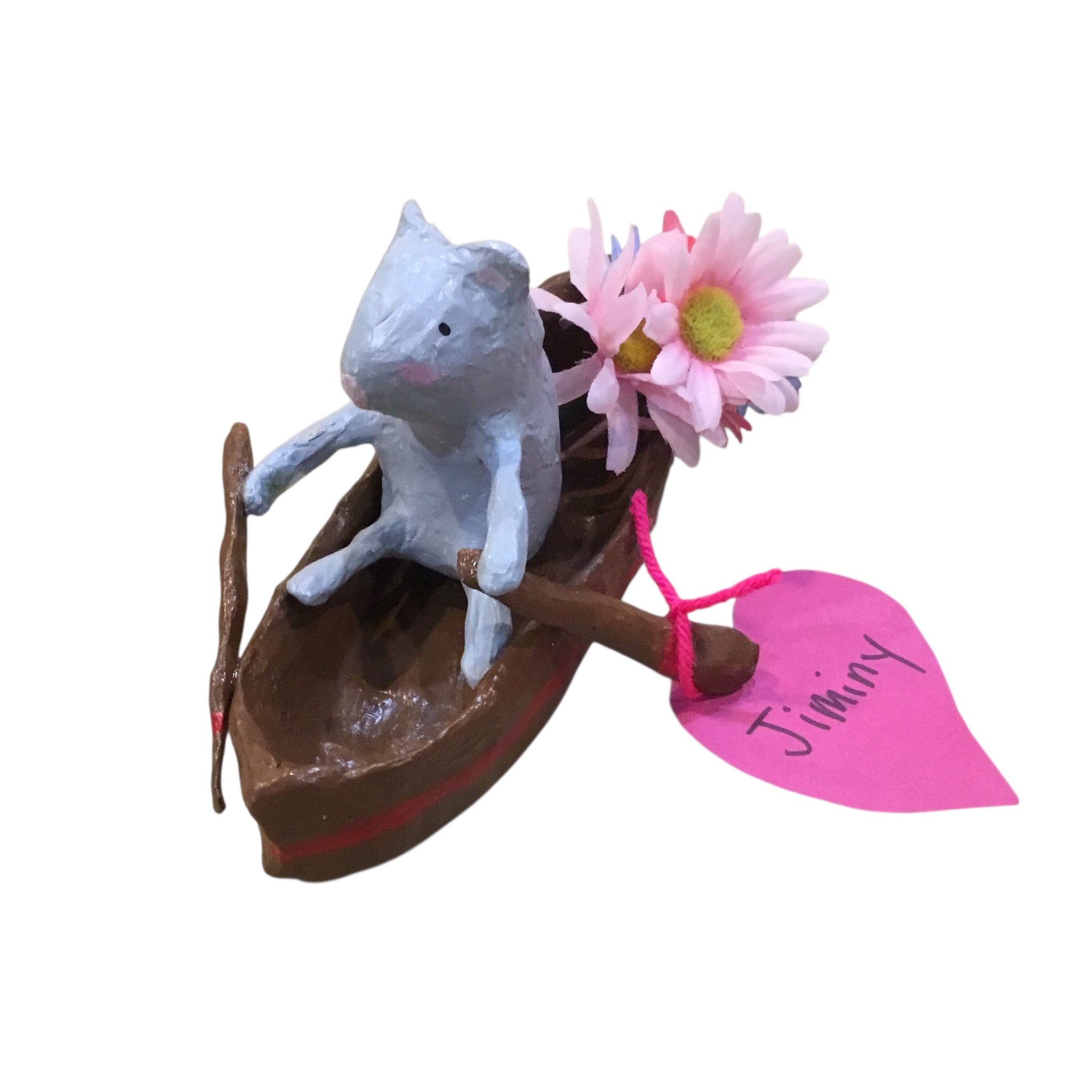 Mouse in a Boat. Handmade Paper Mache with recycled materials.