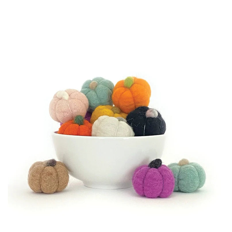 Our mini felt pumpkins are made from 100% New Zealand wool and come in a range of colors (listed below) to complement your Halloween or autumn décor.