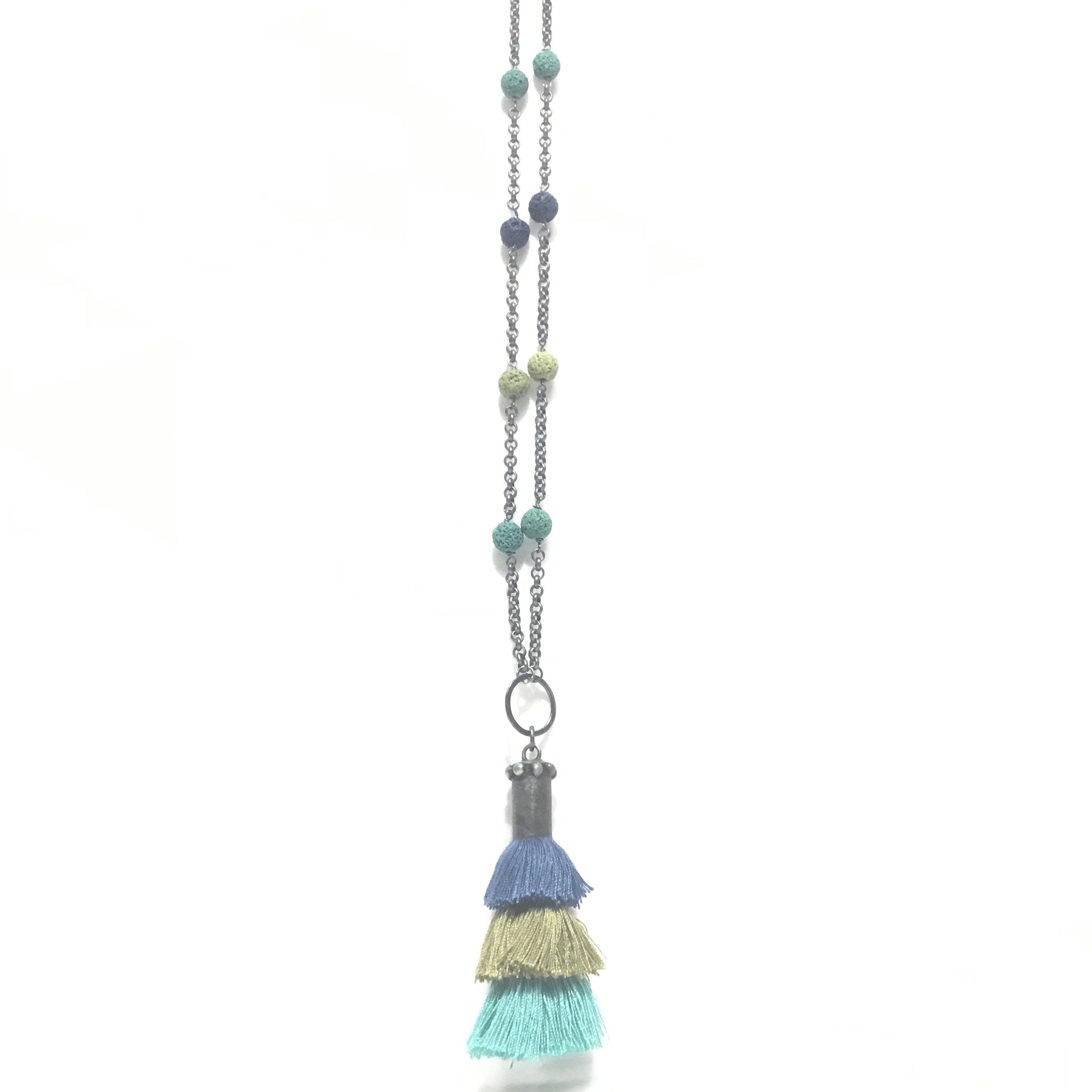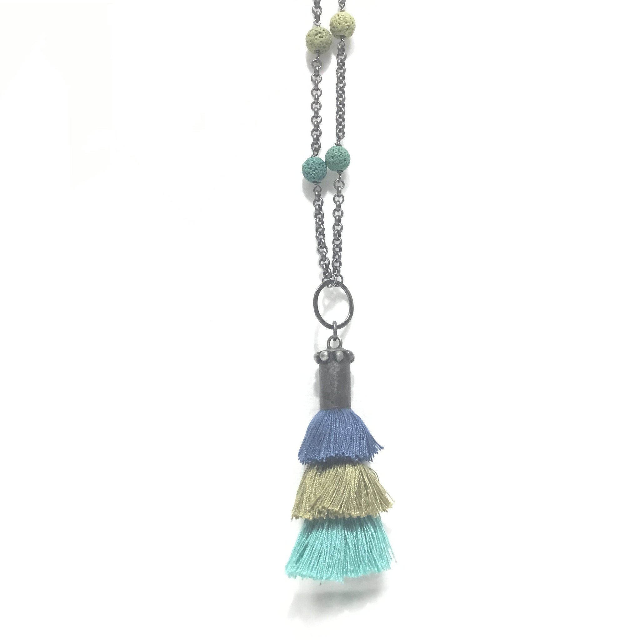 3 Tier Tassel Blue/Olive/Turquoise Necklace