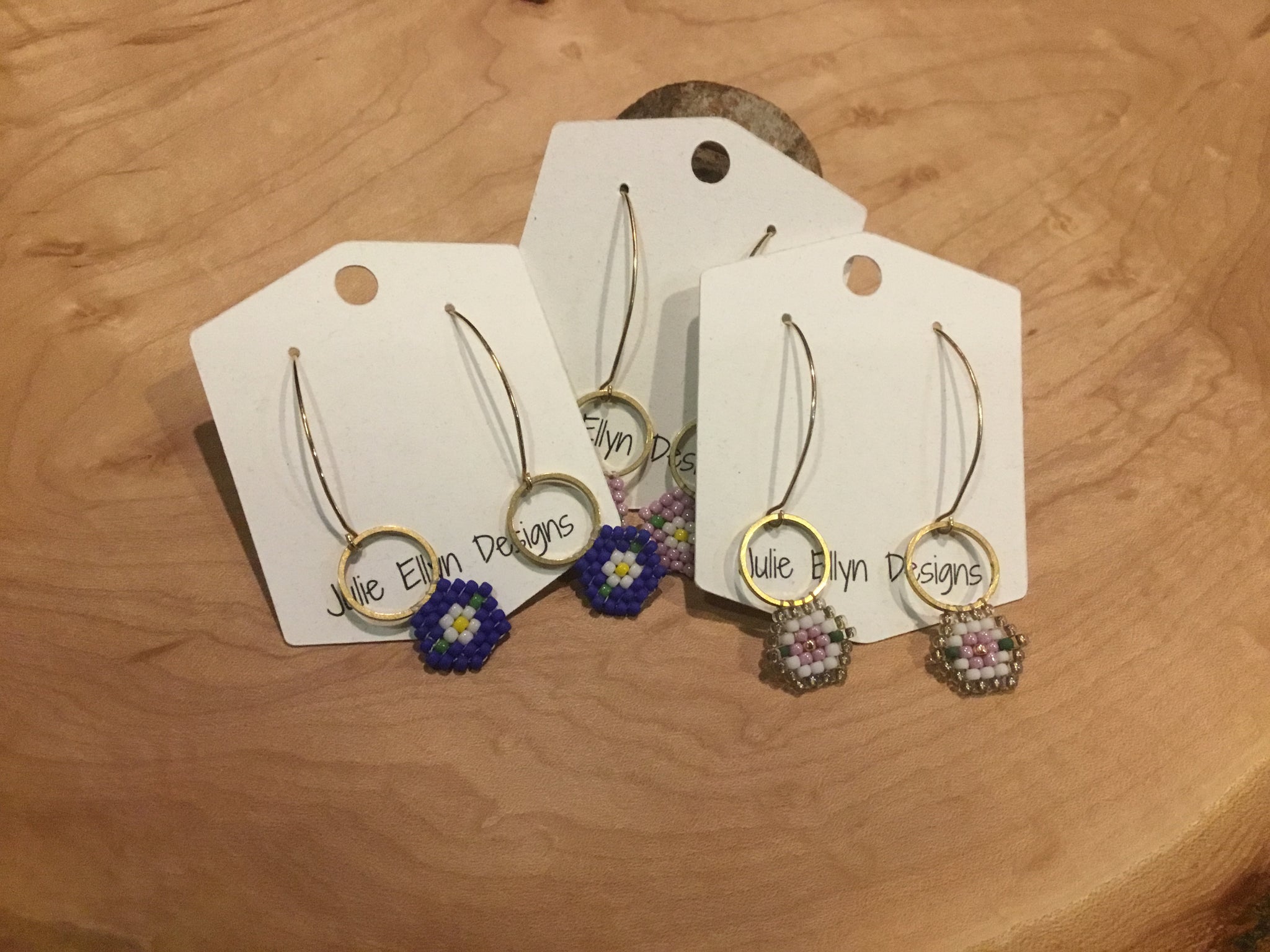 Approx. 2in Gold Hook Dangle Earrings w/ Beaded Flower Design.