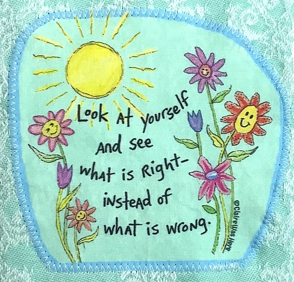 Claire sews images of her artwork onto the towels. All are washed and dried prior to sewing. Washable. Colorfast.