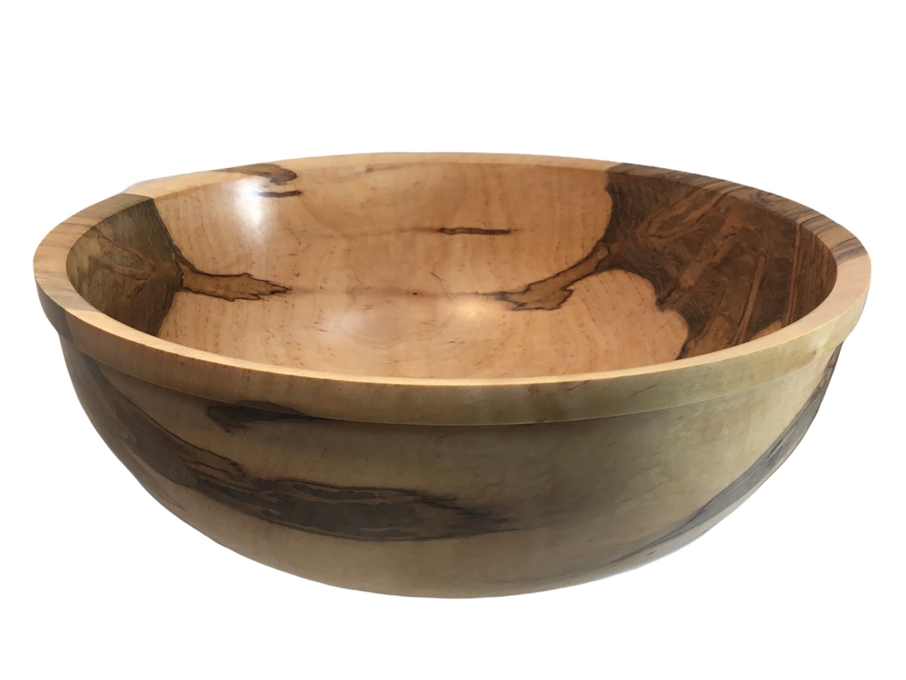 This is Ambrosia Maple with tenacles reaching towards the center inviting you to come and add something inside this bowl. Whatever you add it must be dry. The outside has a curve which allows the bowl to rest gently in your hands as you hold it and a collar around the edge giving you the sense of durability. It is finished with wipe on varnish, buffed, and waxed. It can be refreshed with a quality furniture polish.