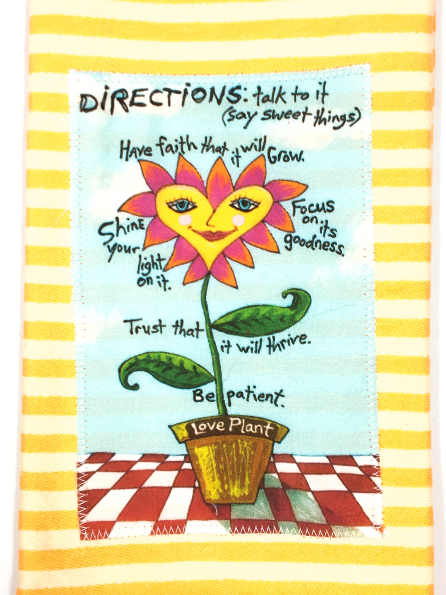 "Love Plant. Directions: talk to it (say sweet things) Have faith that it will grow. Focus on its goodness. Shine your light on it. Trust that it will thrive. Be patient."