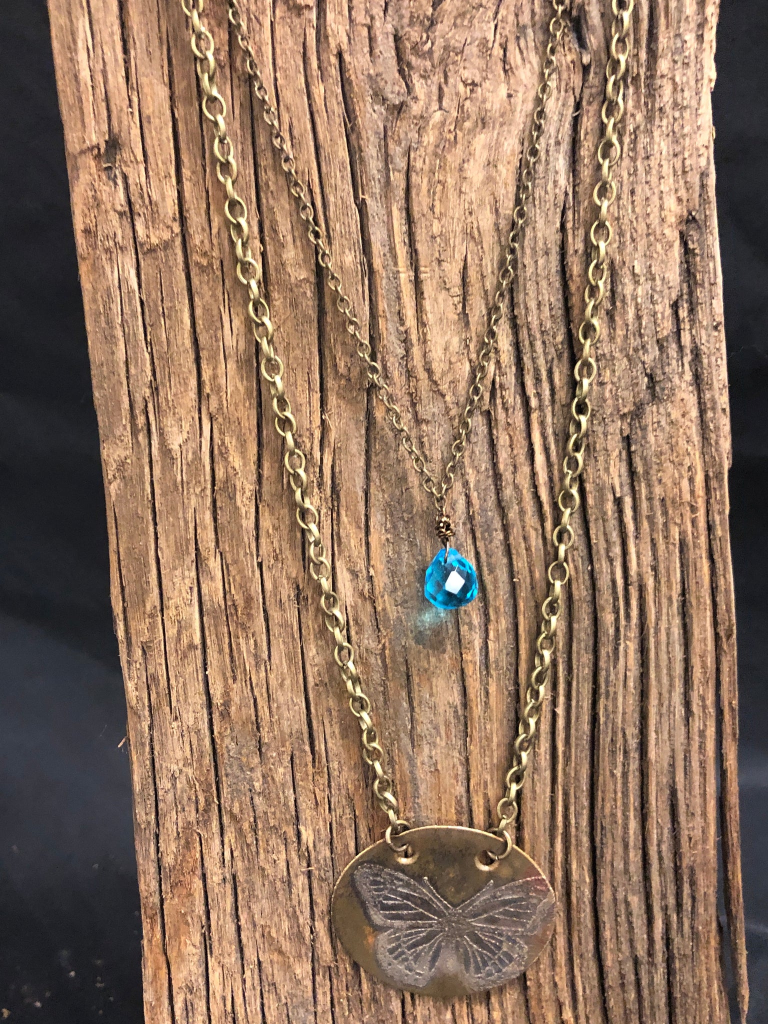 Oval shape blank with etched butterfly (22"), double chain with aqua bead (16")