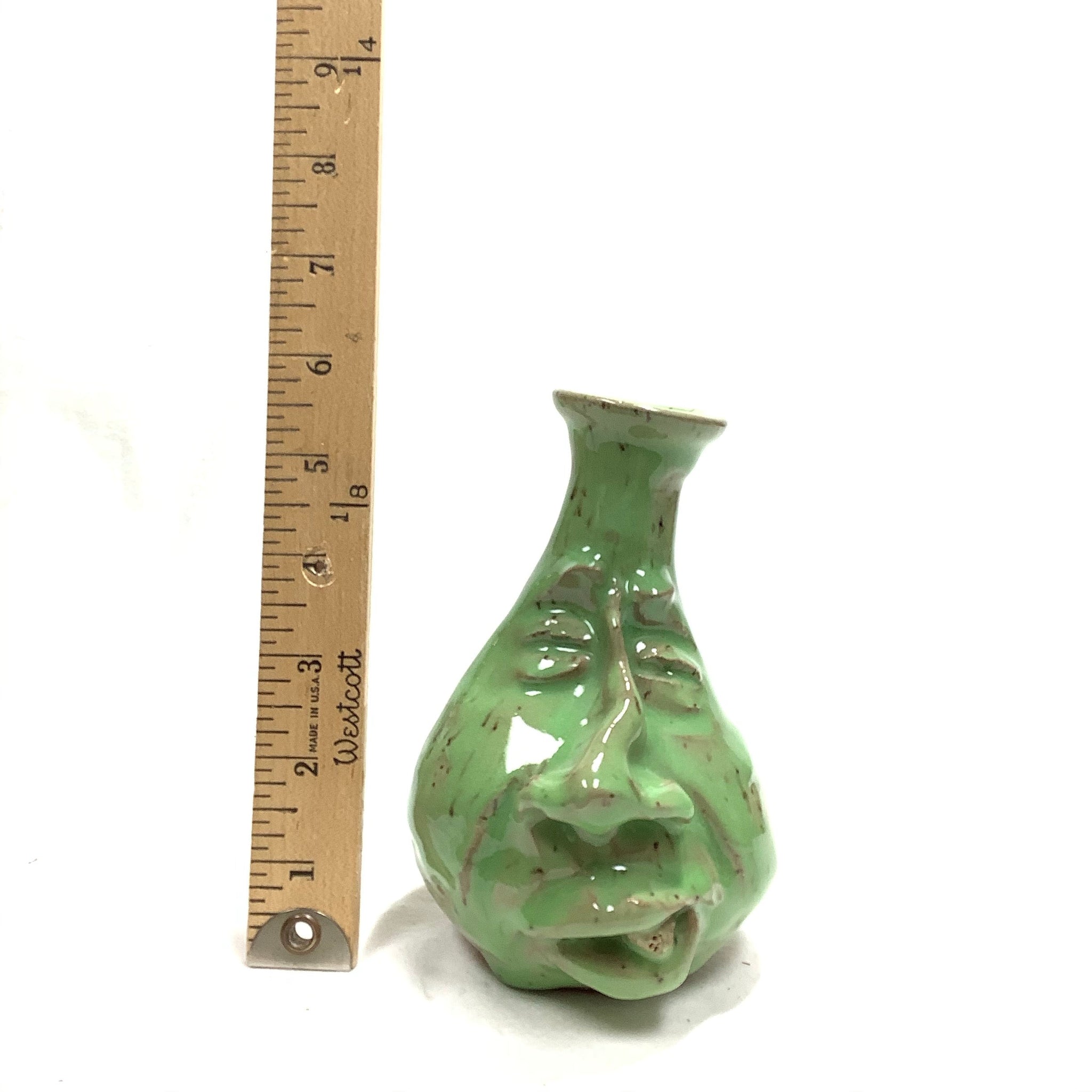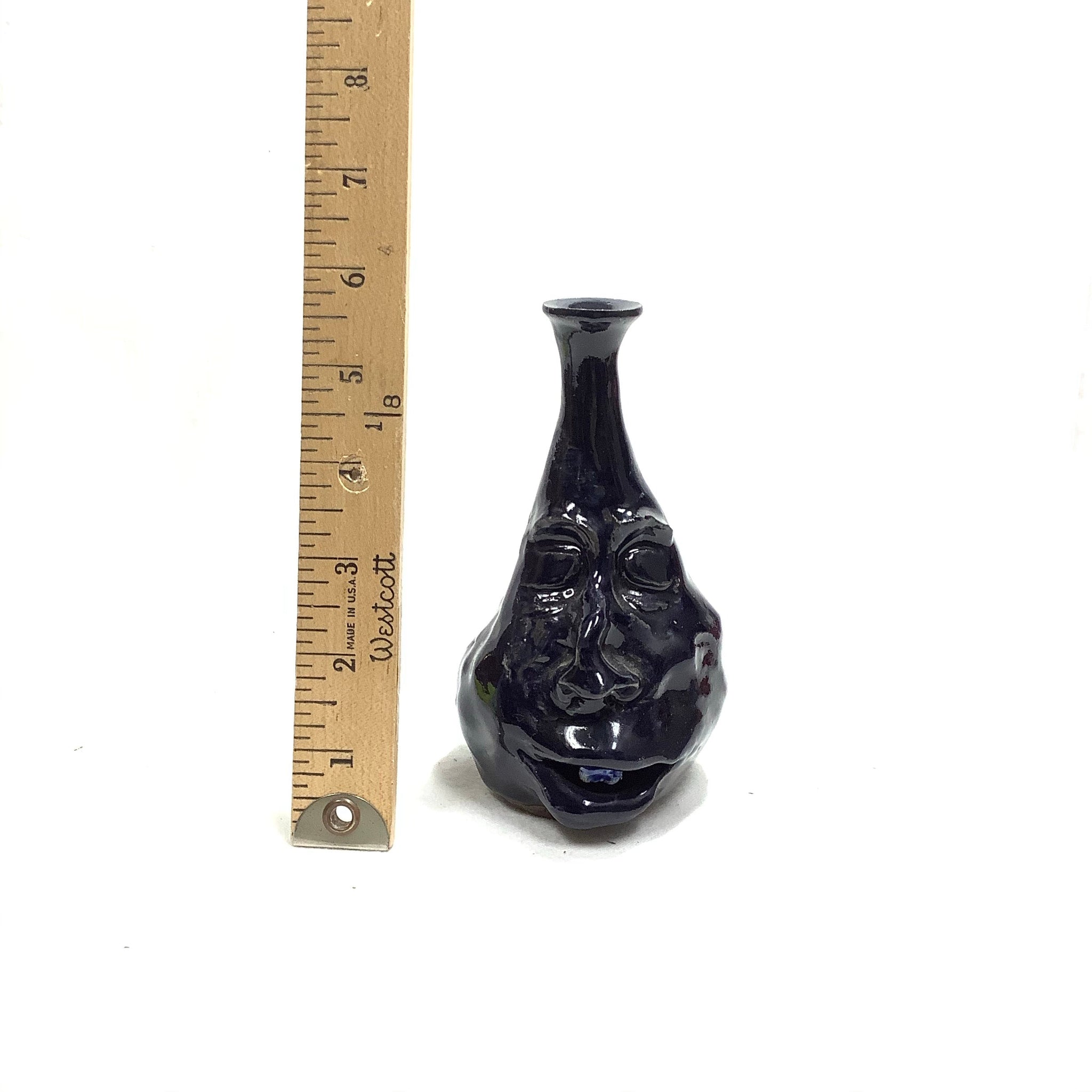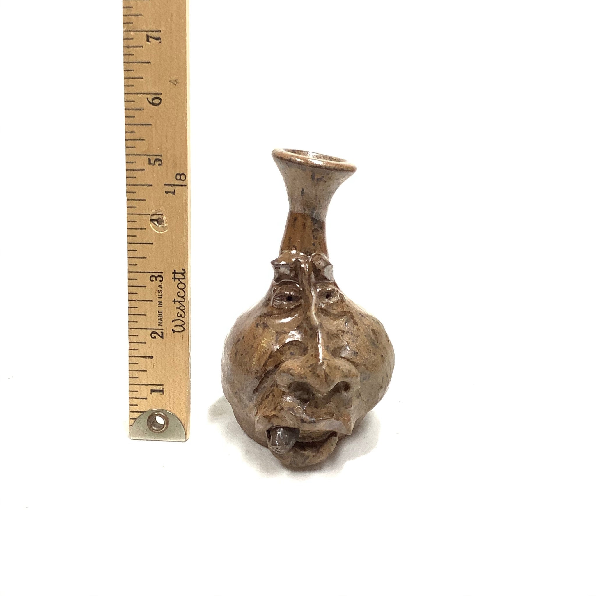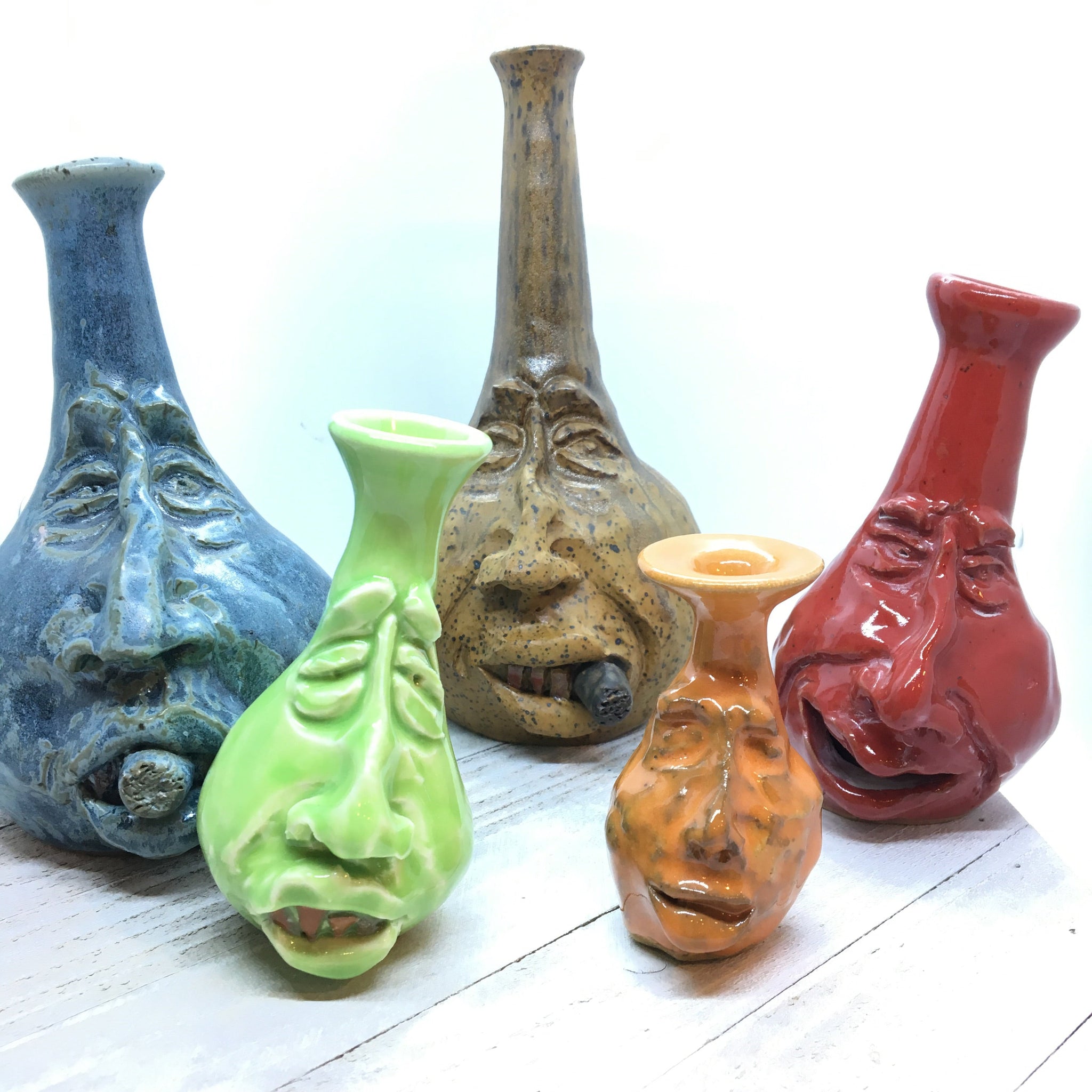 Roy Sams' whimsical take on traditional face pottery offers such unique statement pieces that are sure to bring a smile. The face pots without holes in the mouths can hold water and are functional as vases. See pictures for reference.
