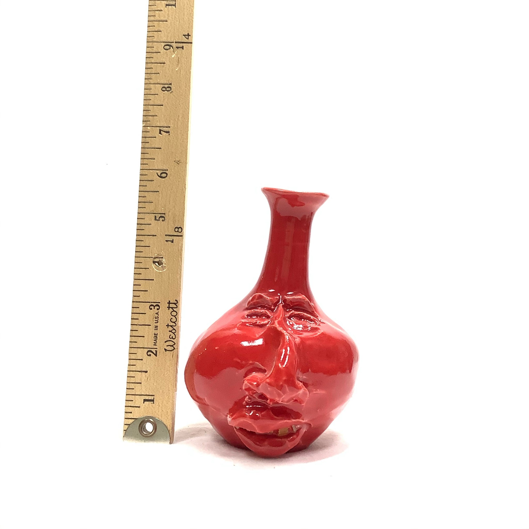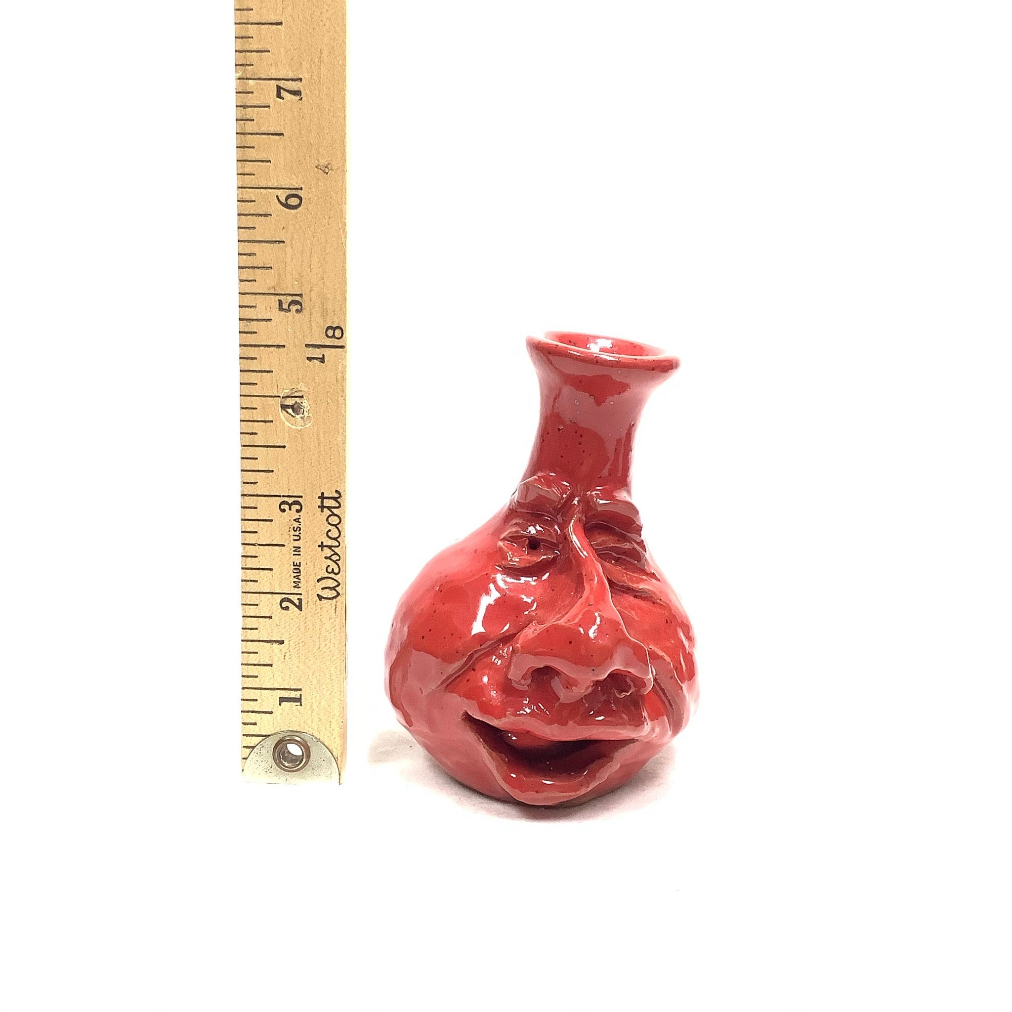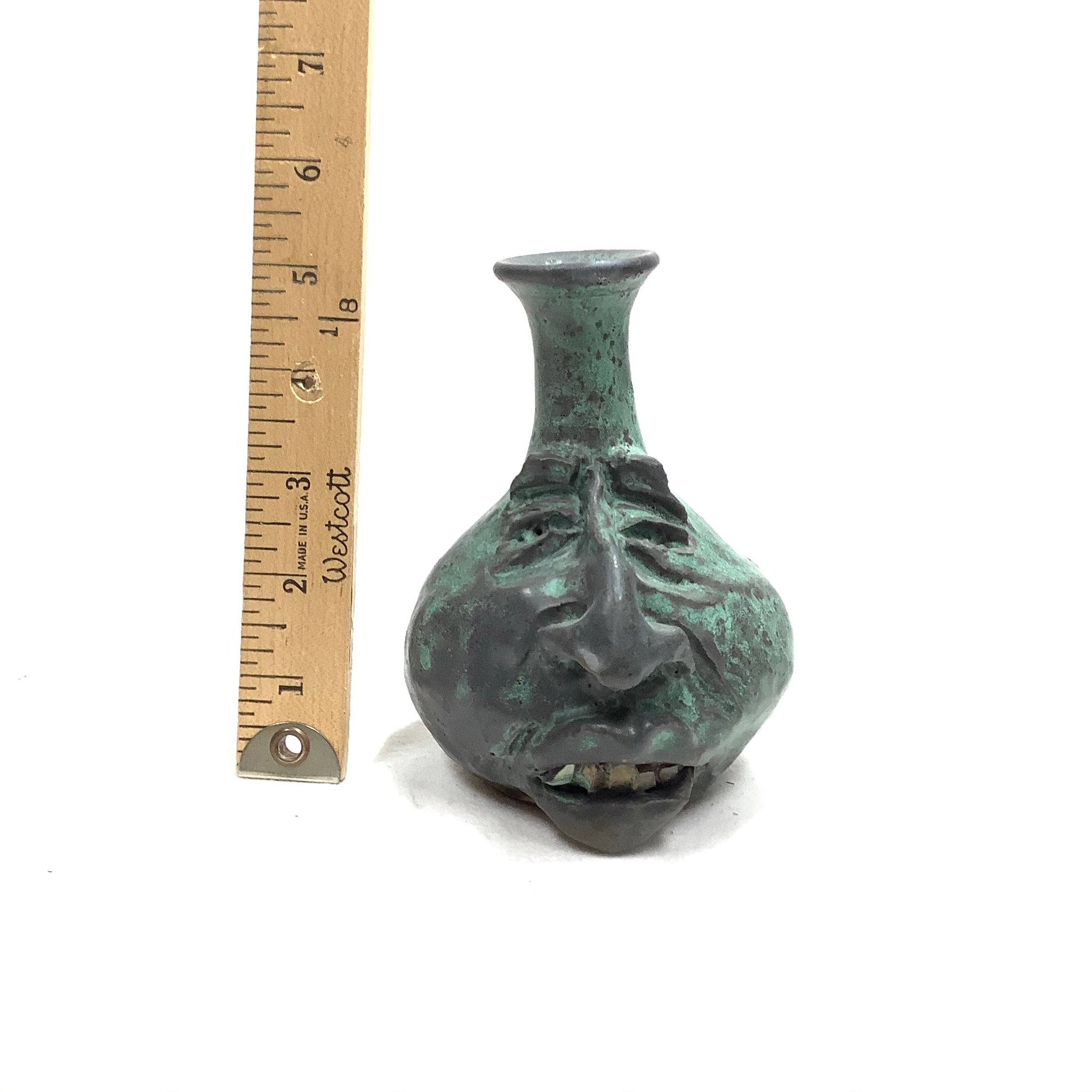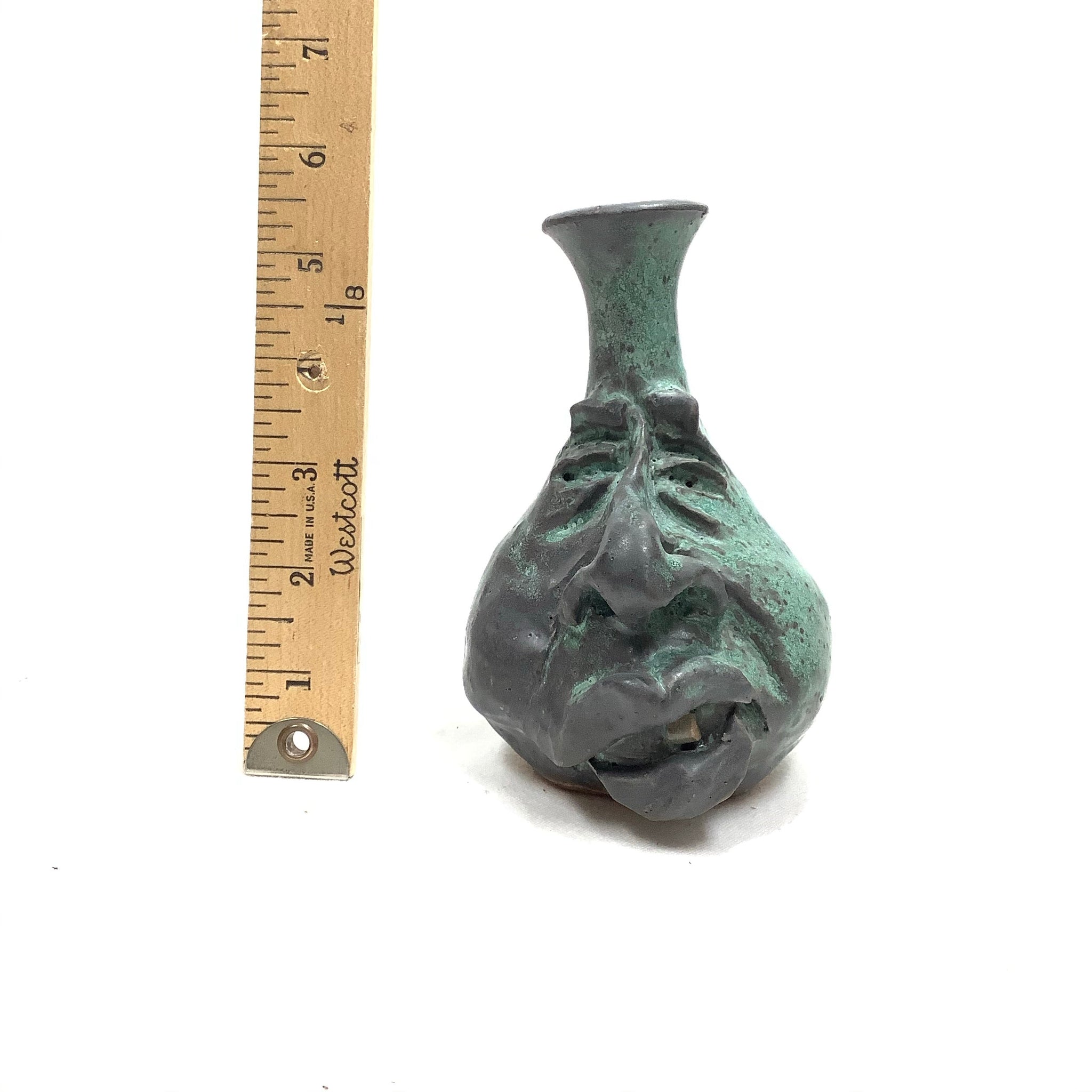 Roy Sams' whimsical take on traditional face pottery offers such unique statement pieces that are sure to bring a smile. The face pots without holes in the mouths can hold water and are functional as vases. See pictures for reference.