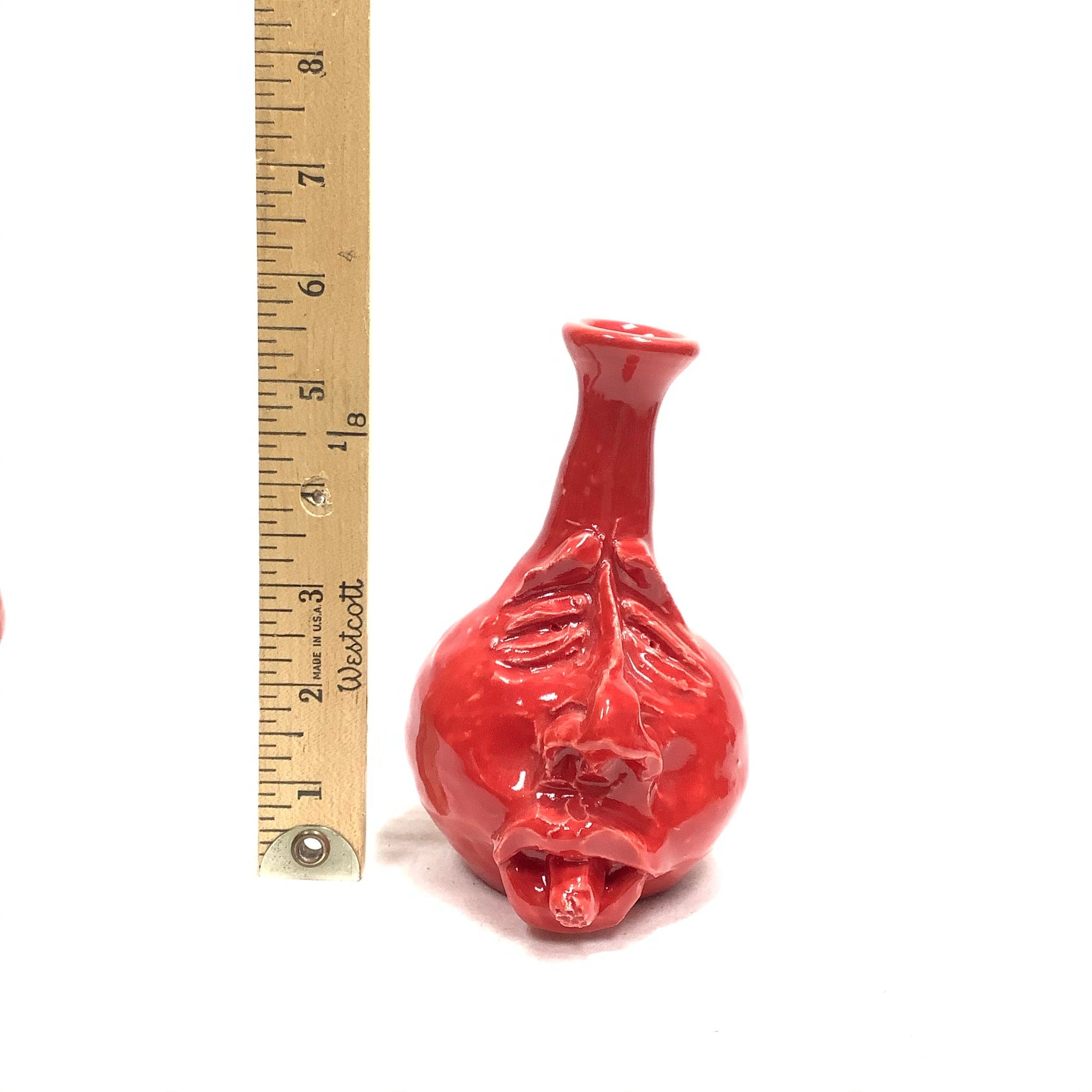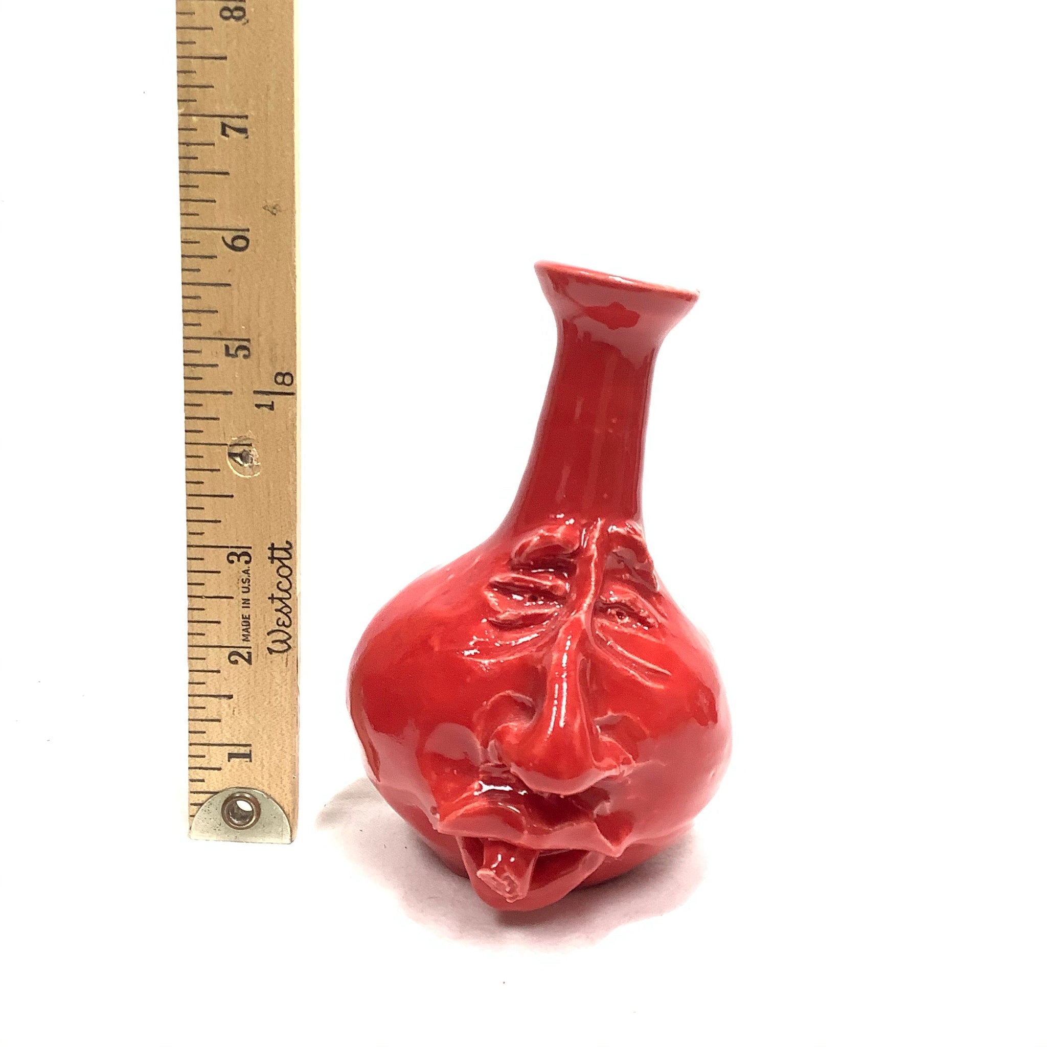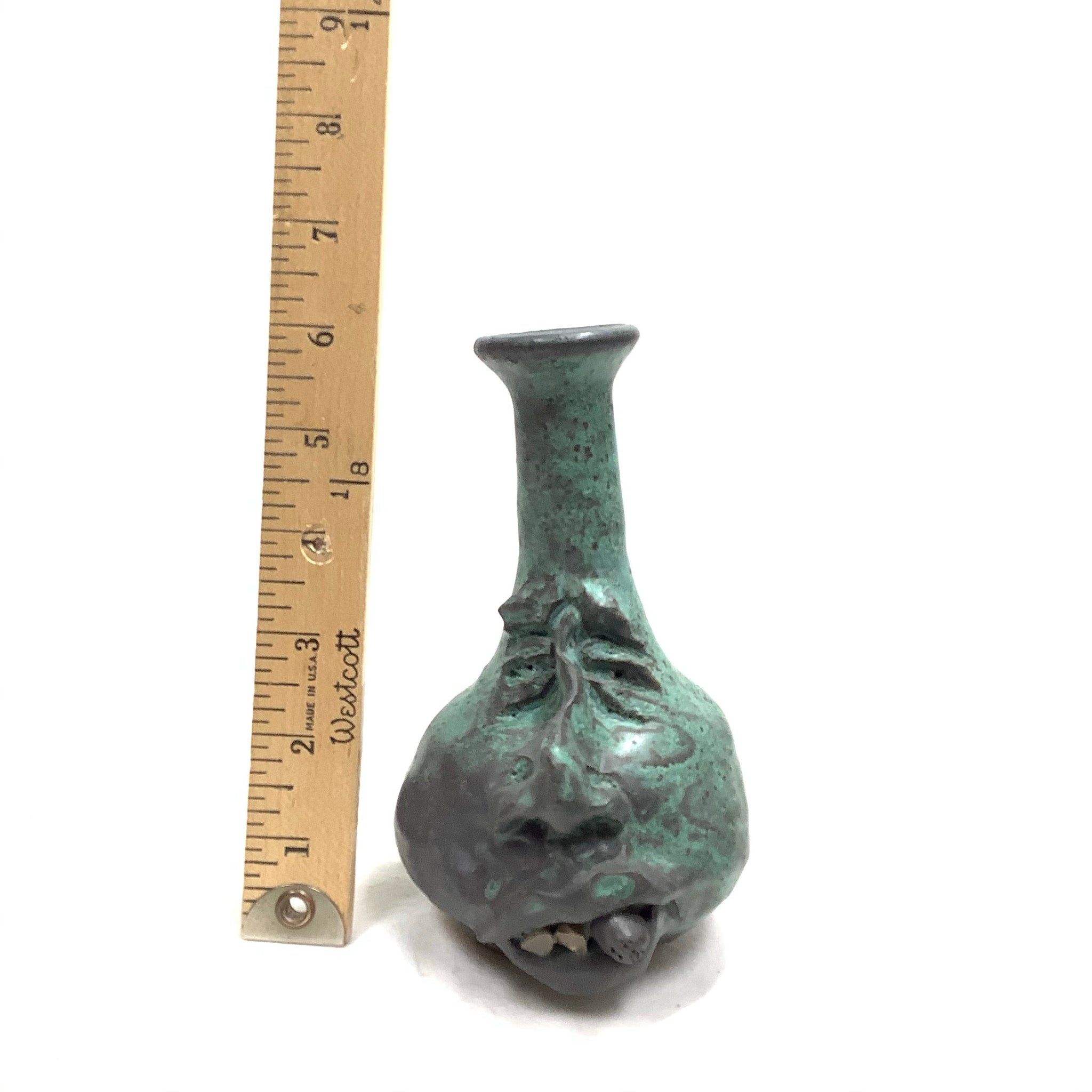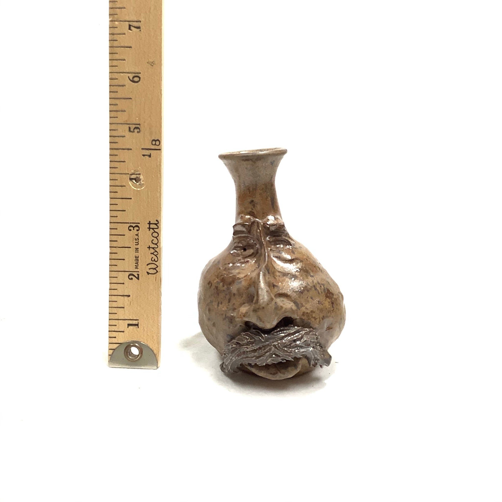 Roy Sams' whimsical take on traditional face pottery offers such unique statement pieces that are sure to bring a smile. The face pots without holes in the mouths can hold water and are functional as vases. See pictures for reference.