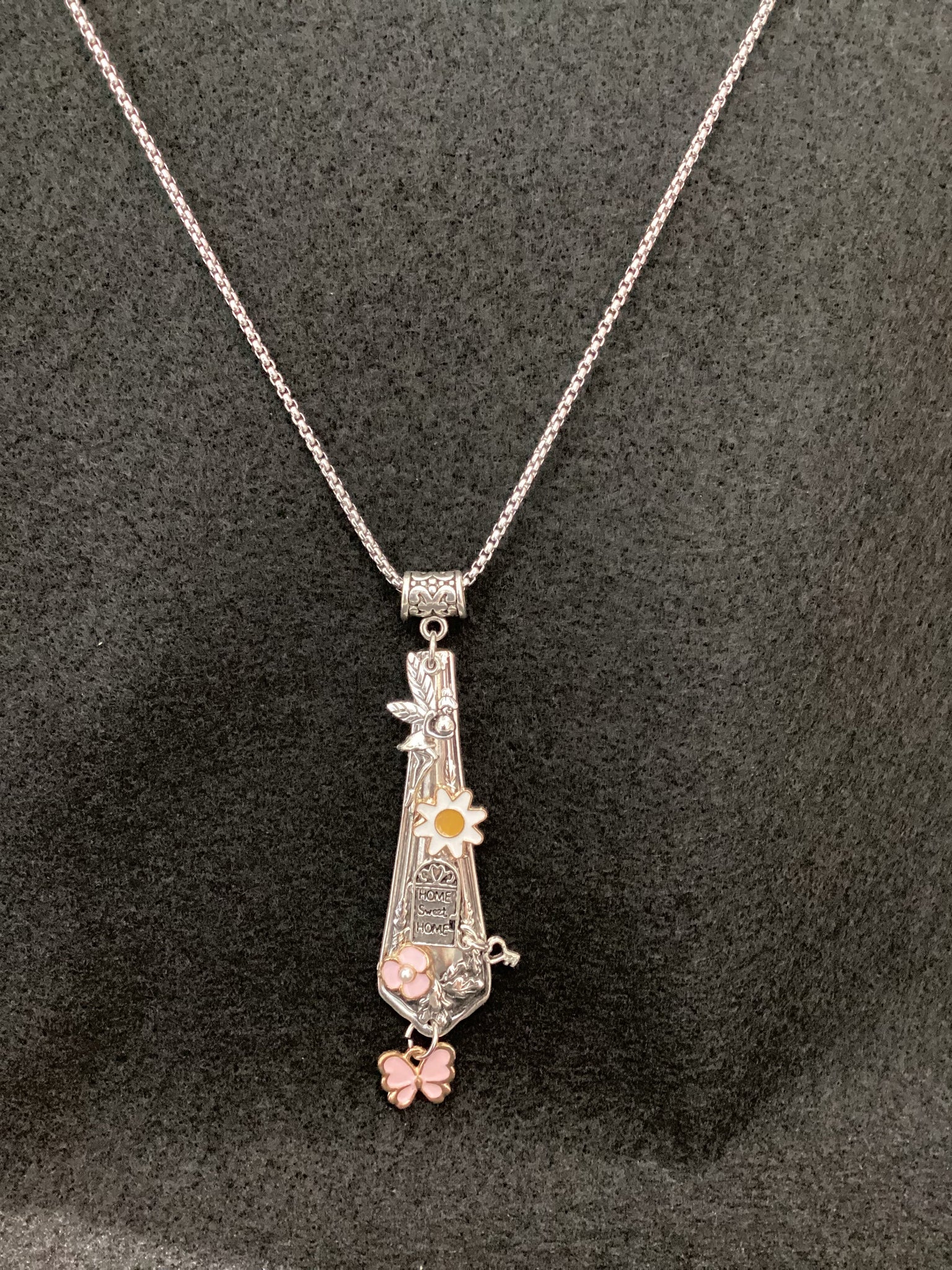 Vintage silverplate stem with modern finding on a stainless steel chain