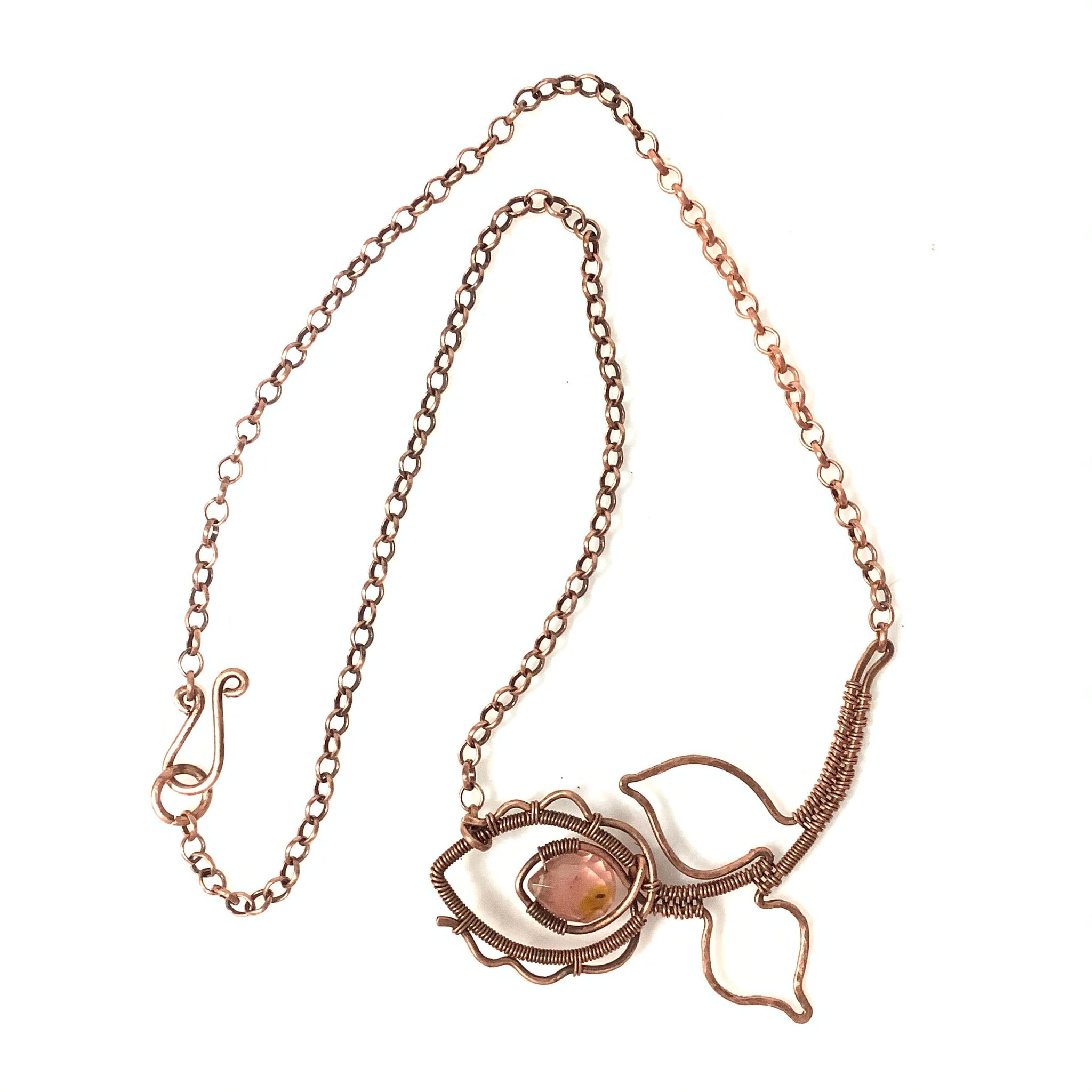 Handwoven Copper wire Necklace embellished with Rose Quartz. Approximately 22” long