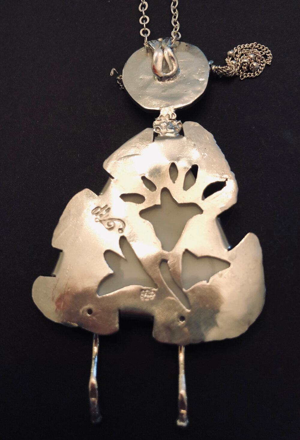 Beautiful flowered porcelain dress adorns this charming girl with the long sterling hair.