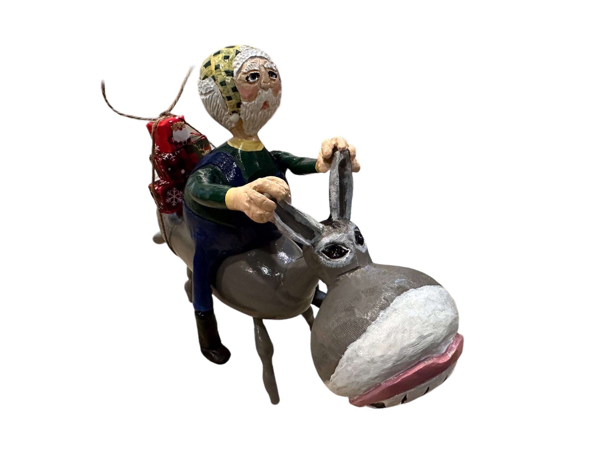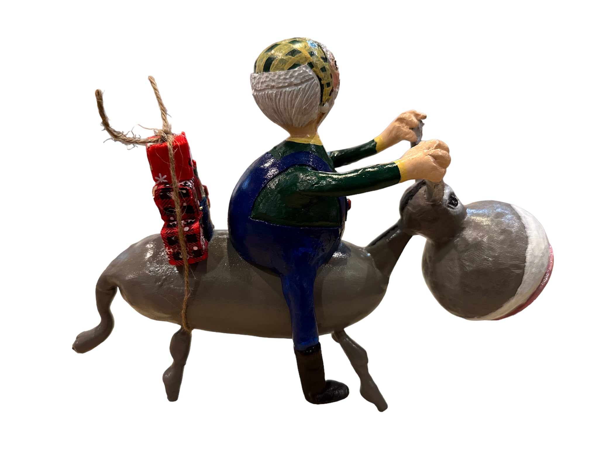Grandpa riding on a mule, created from gourd, approx. 10" x 8"