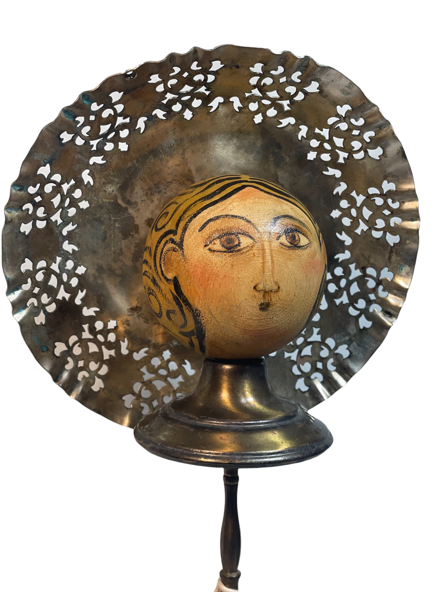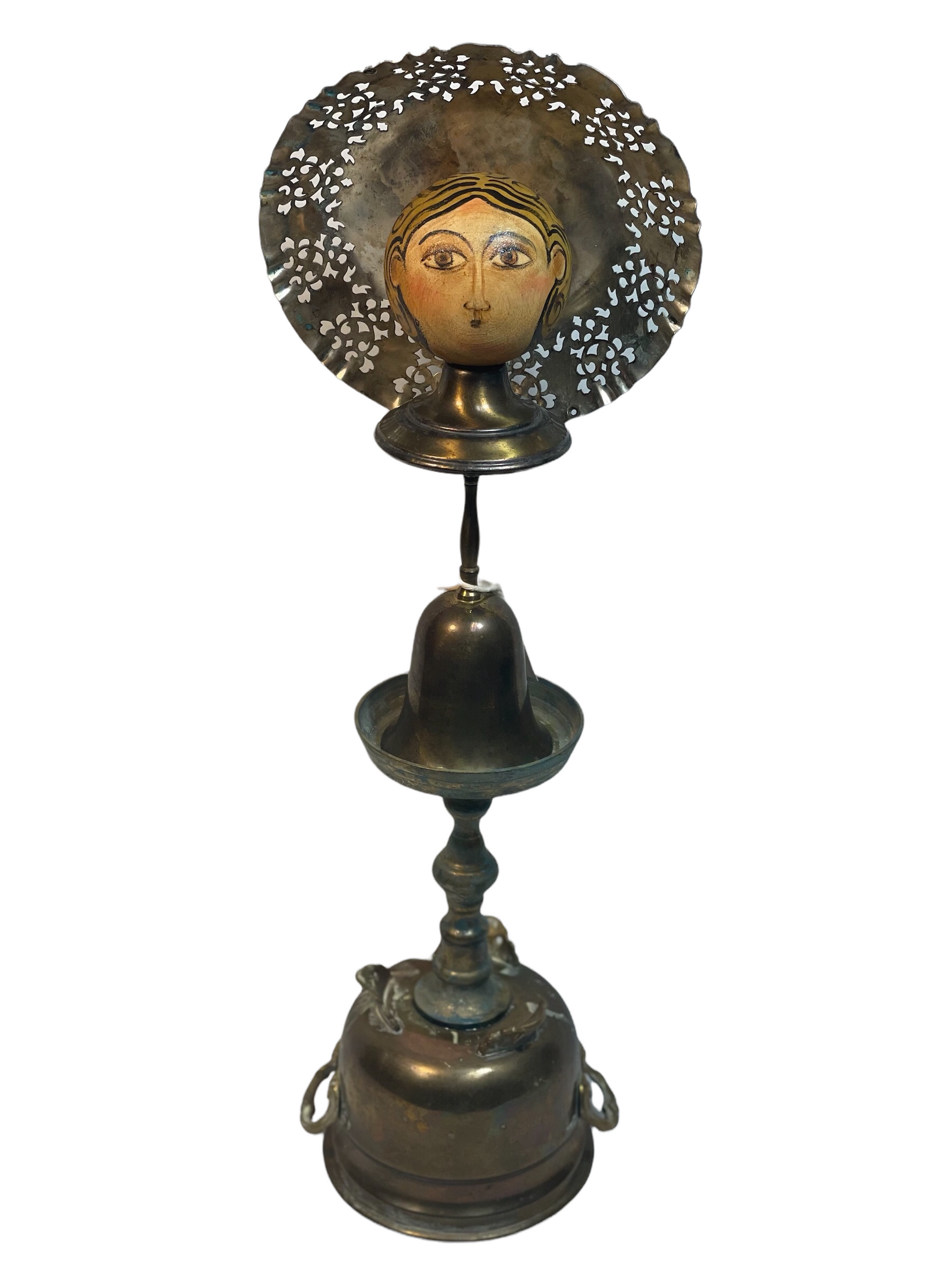 Handmade from up-cycled elements such as candlesticks, lamp parts, kitchen utensils, teapots, and faucet handles.
