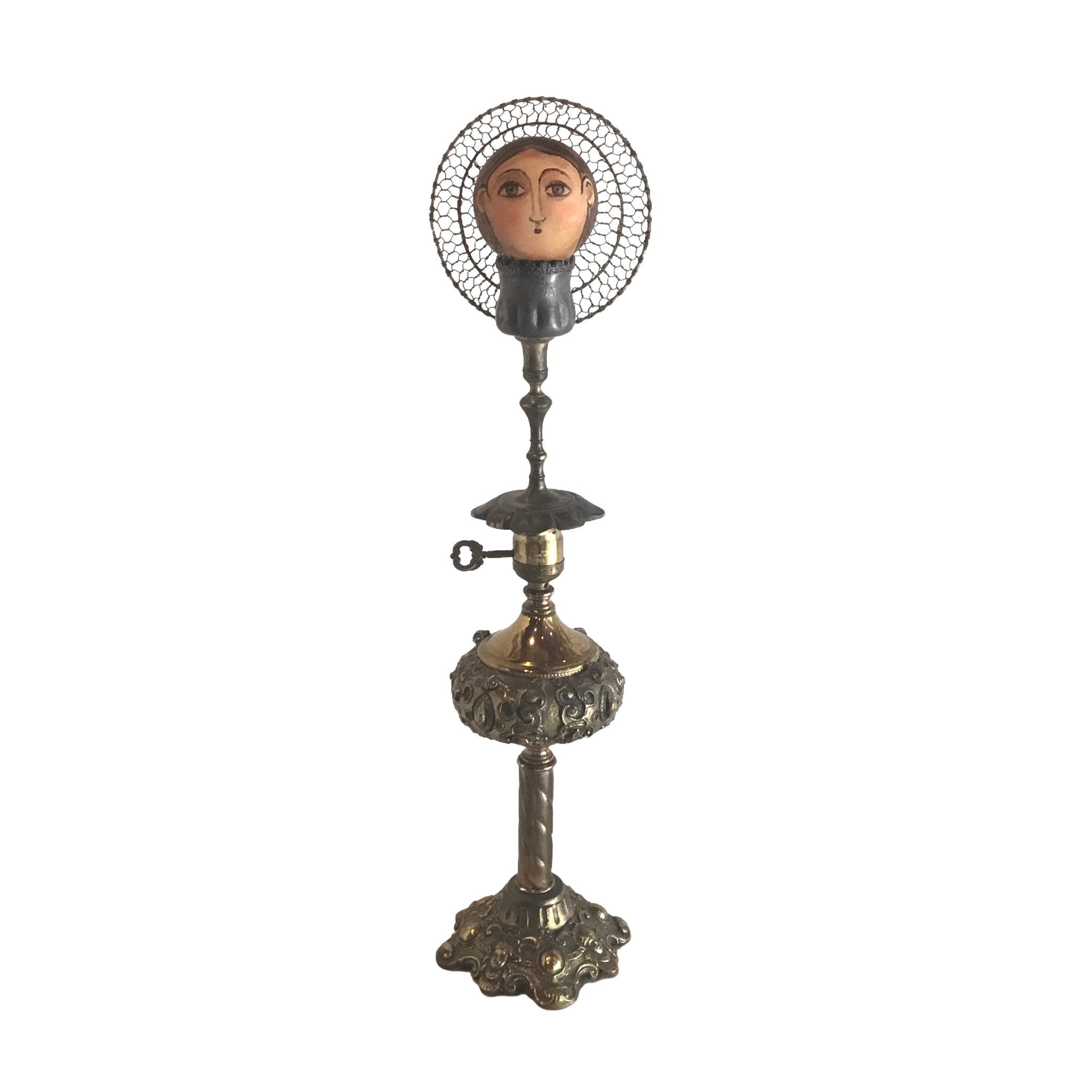 Handmade from up-cycled elements such as candlesticks, lamp parts, kitchen utensils, teapots, and faucet handles.