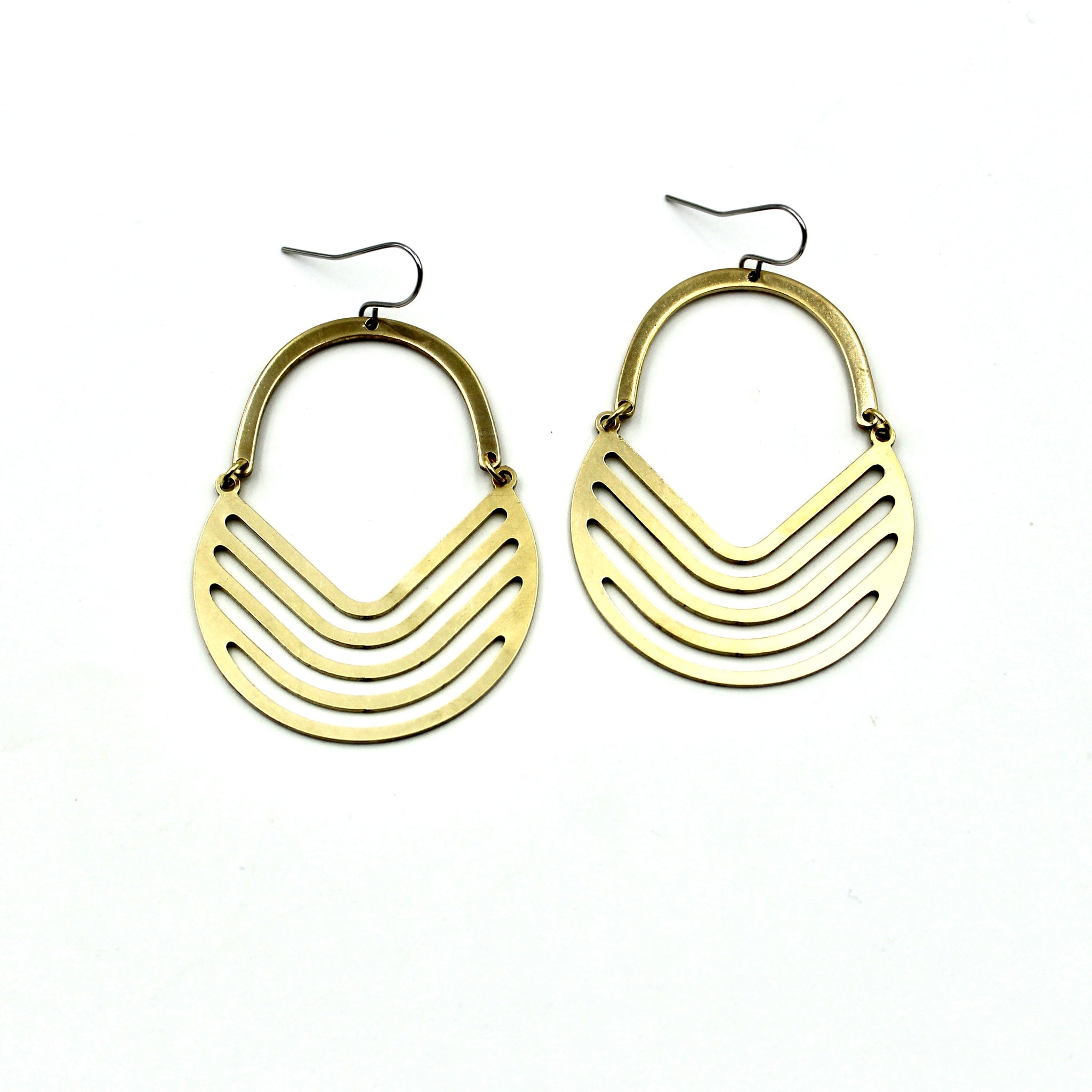 This adorable pair of earrings feature hanging basket shaped charms with little cutout stripes. Includes rubber backs.