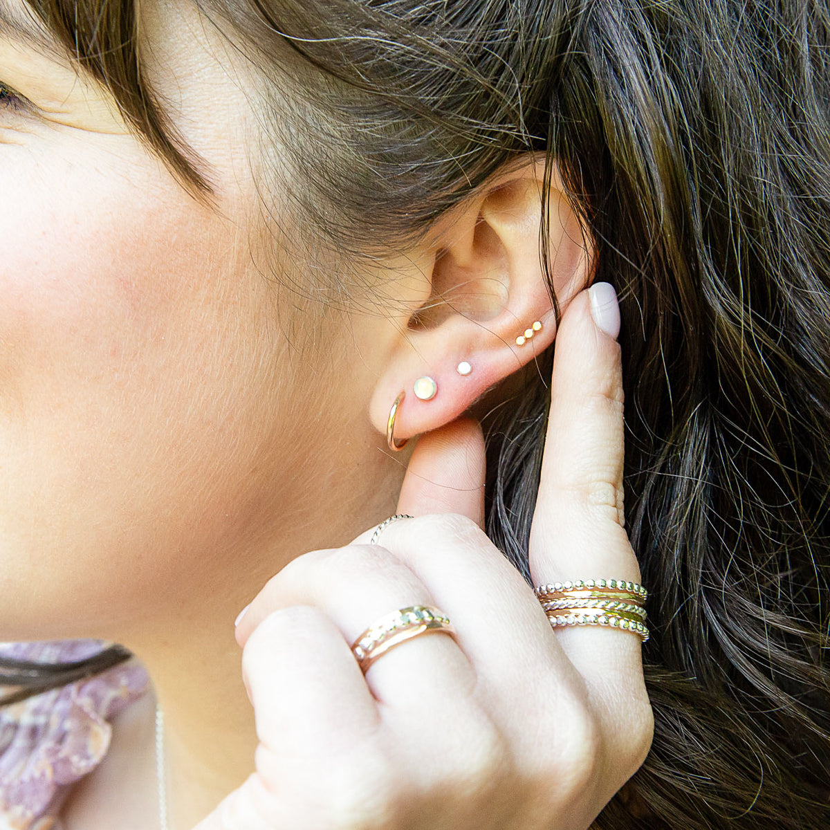 These earrings go well with just about anything, but especially my Double Ring Pendant and Stacking Rings. Pictured with the Extra Small Circle Studs, Single Dot Studs, and Beaded Studs.