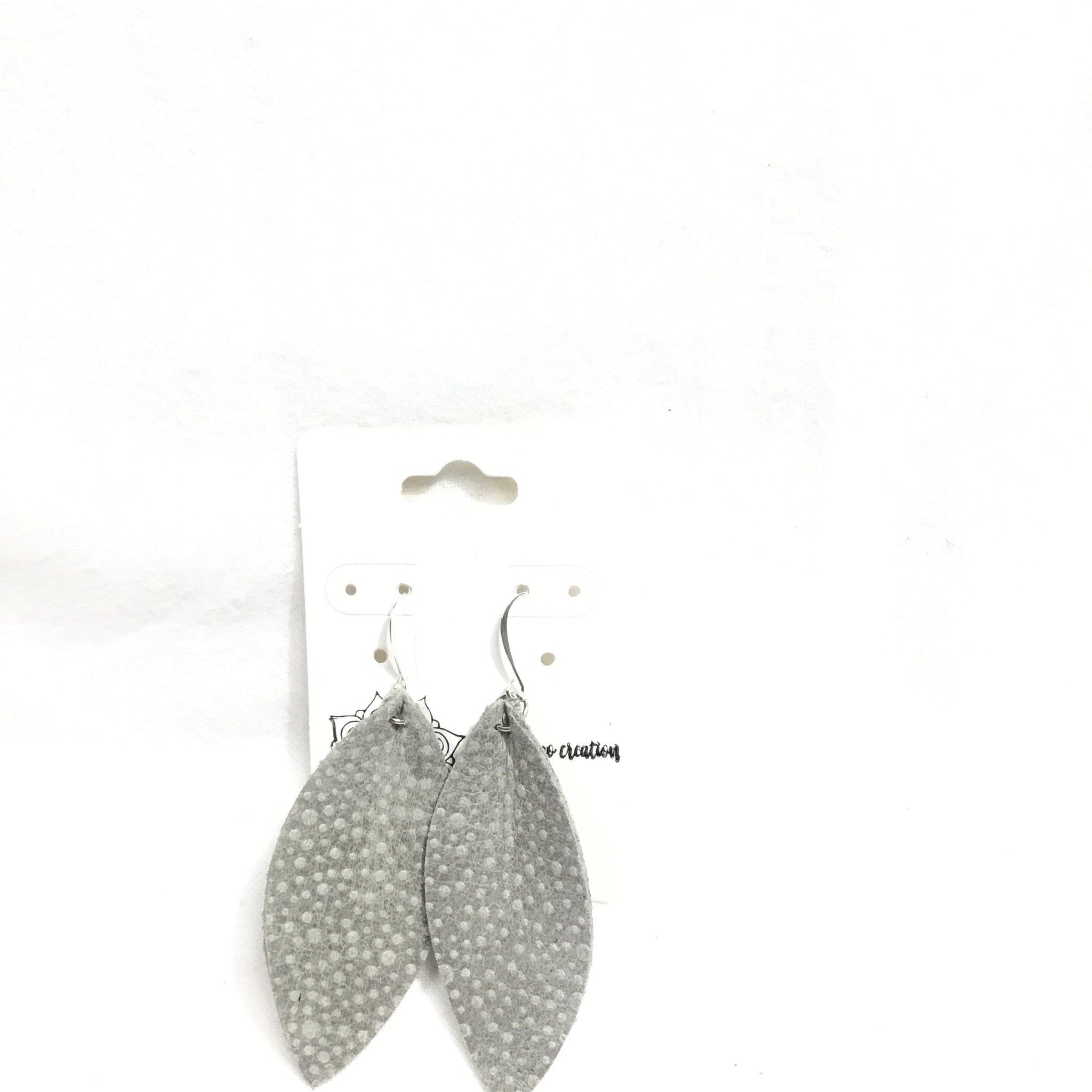 Leather Leaf Earrings. Light Gray.