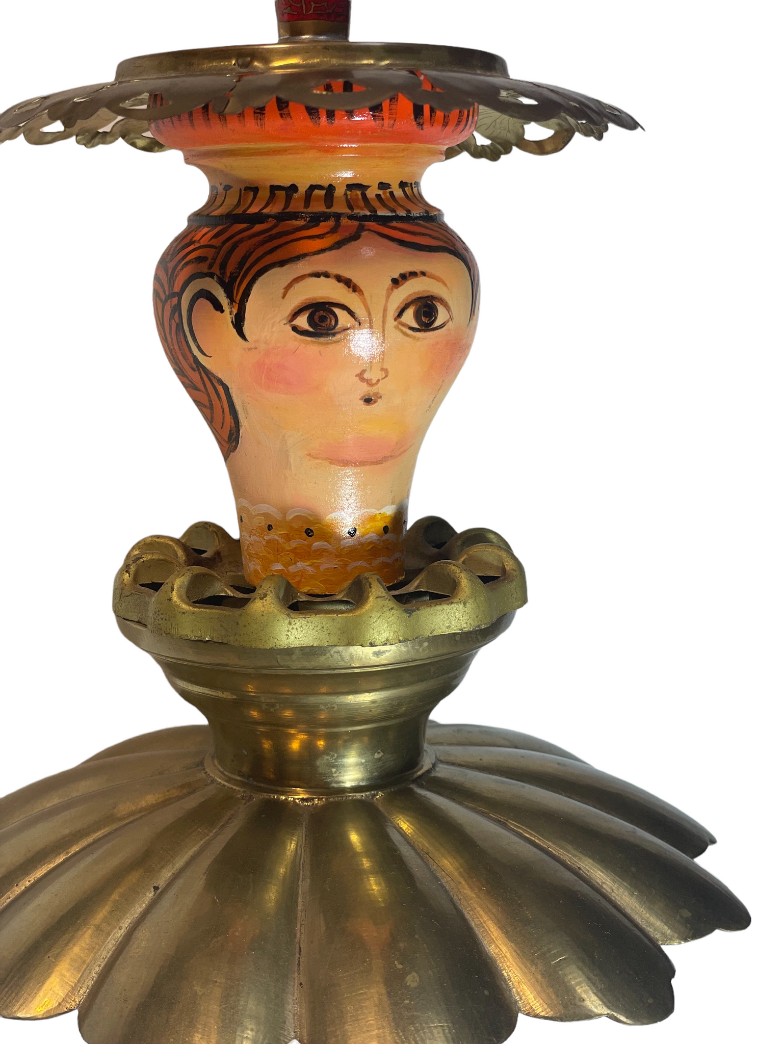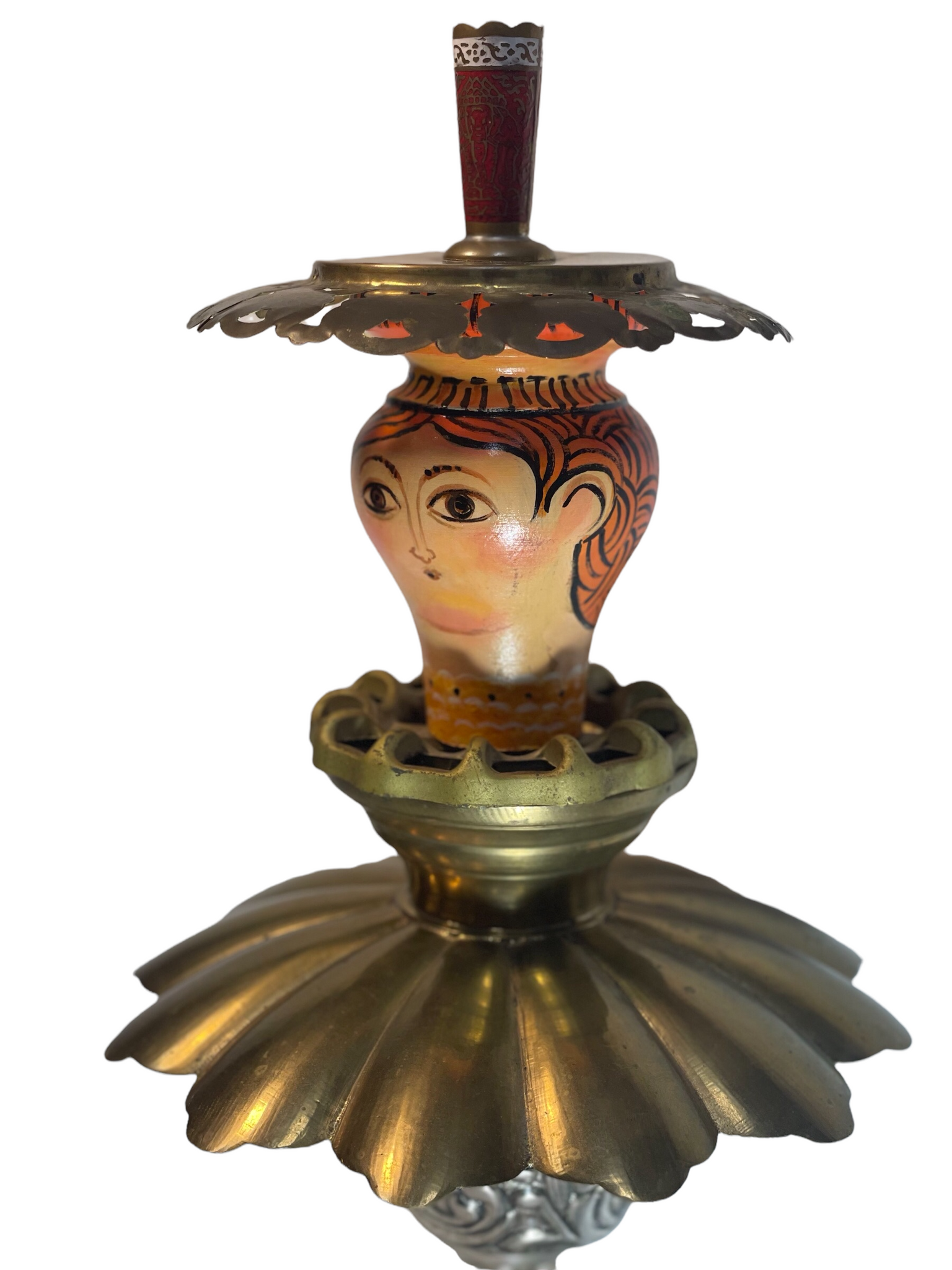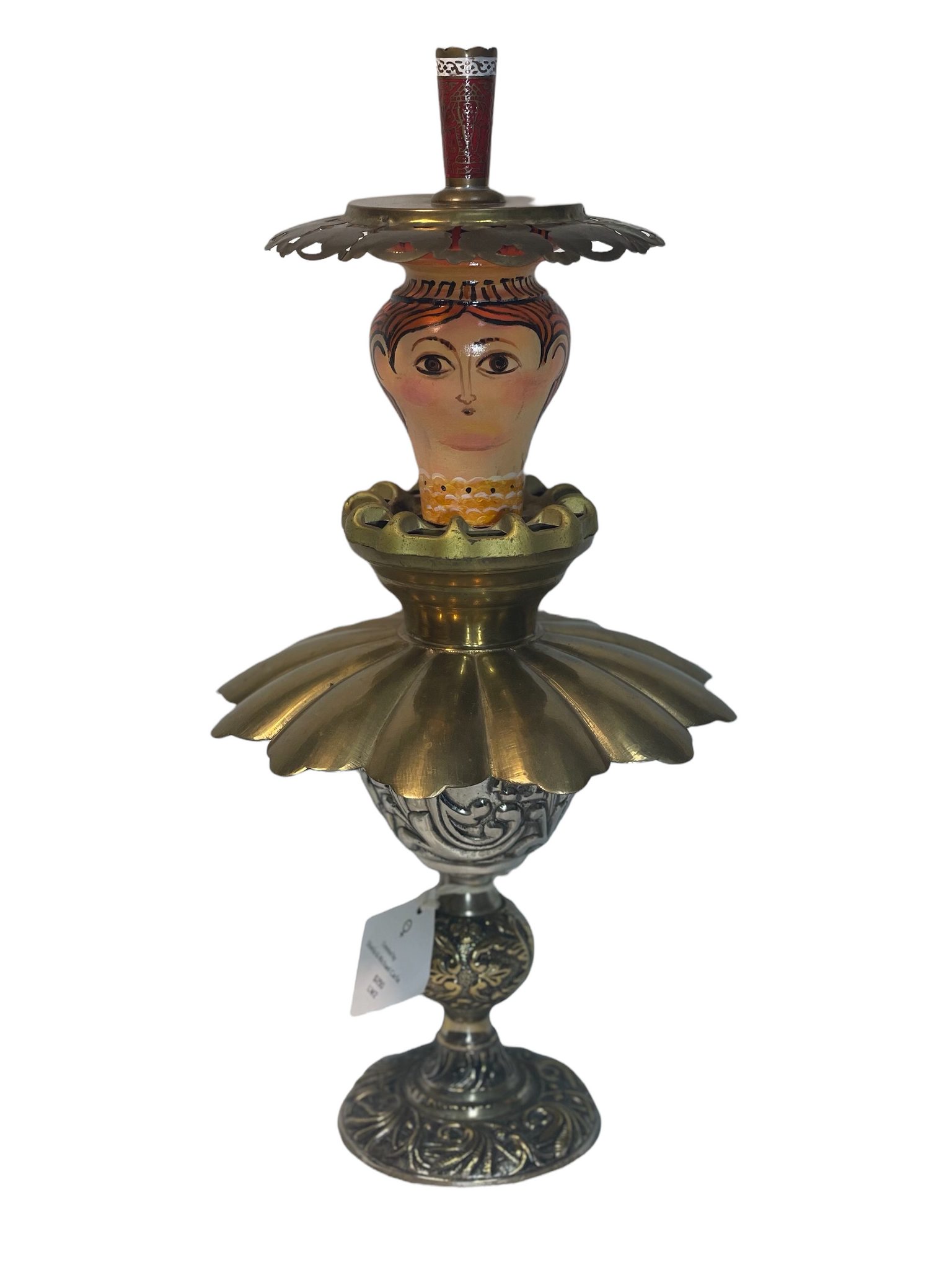 Handmade from up-cycled elements such as candlesticks, lamp parts, kitchen utensils, teapots, and faucet handles.
