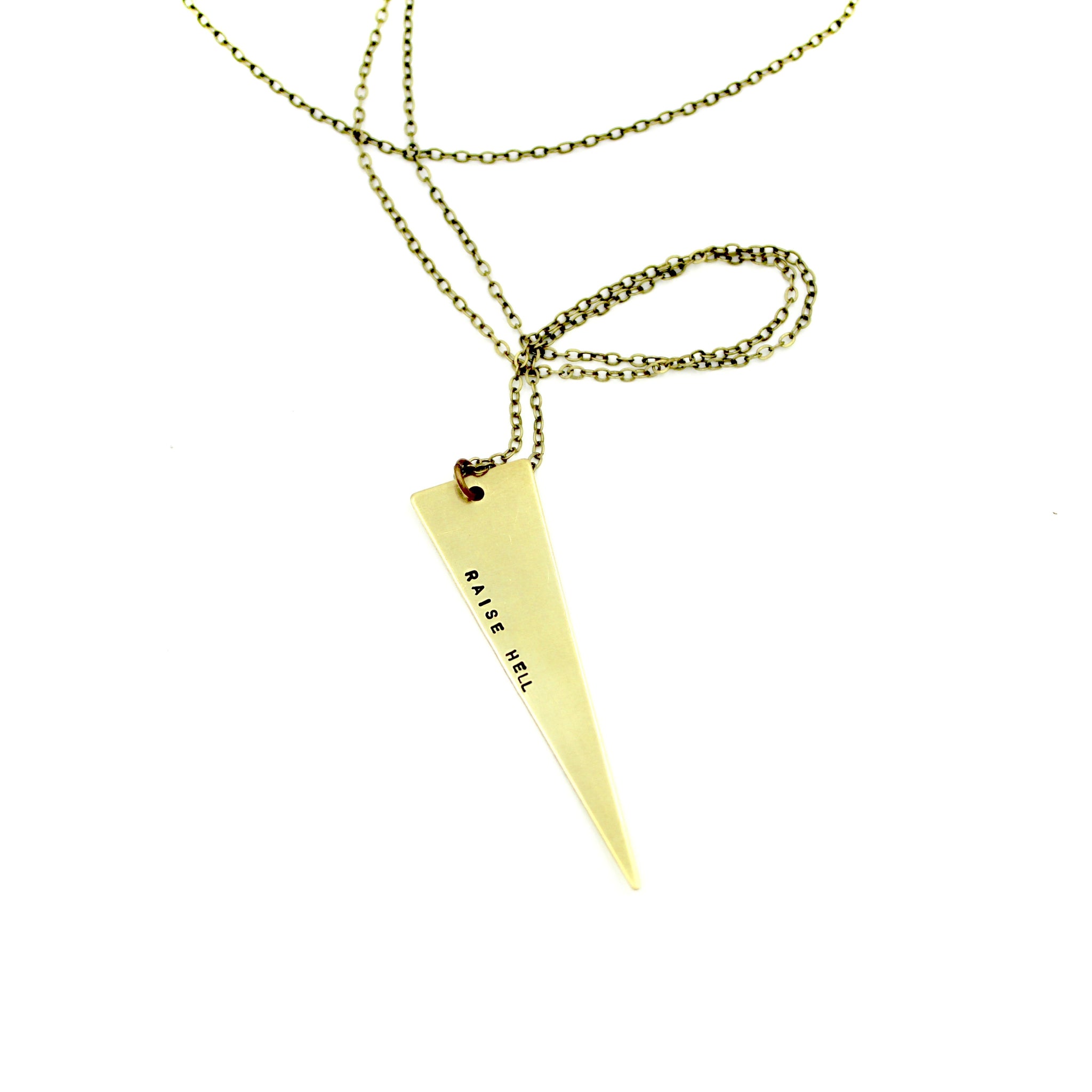 This necklace features a gorgeous brass charm, and is hand-stamped with raise hell.